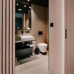 Badeværelserne har et badekar, separat toilet og en bruser.